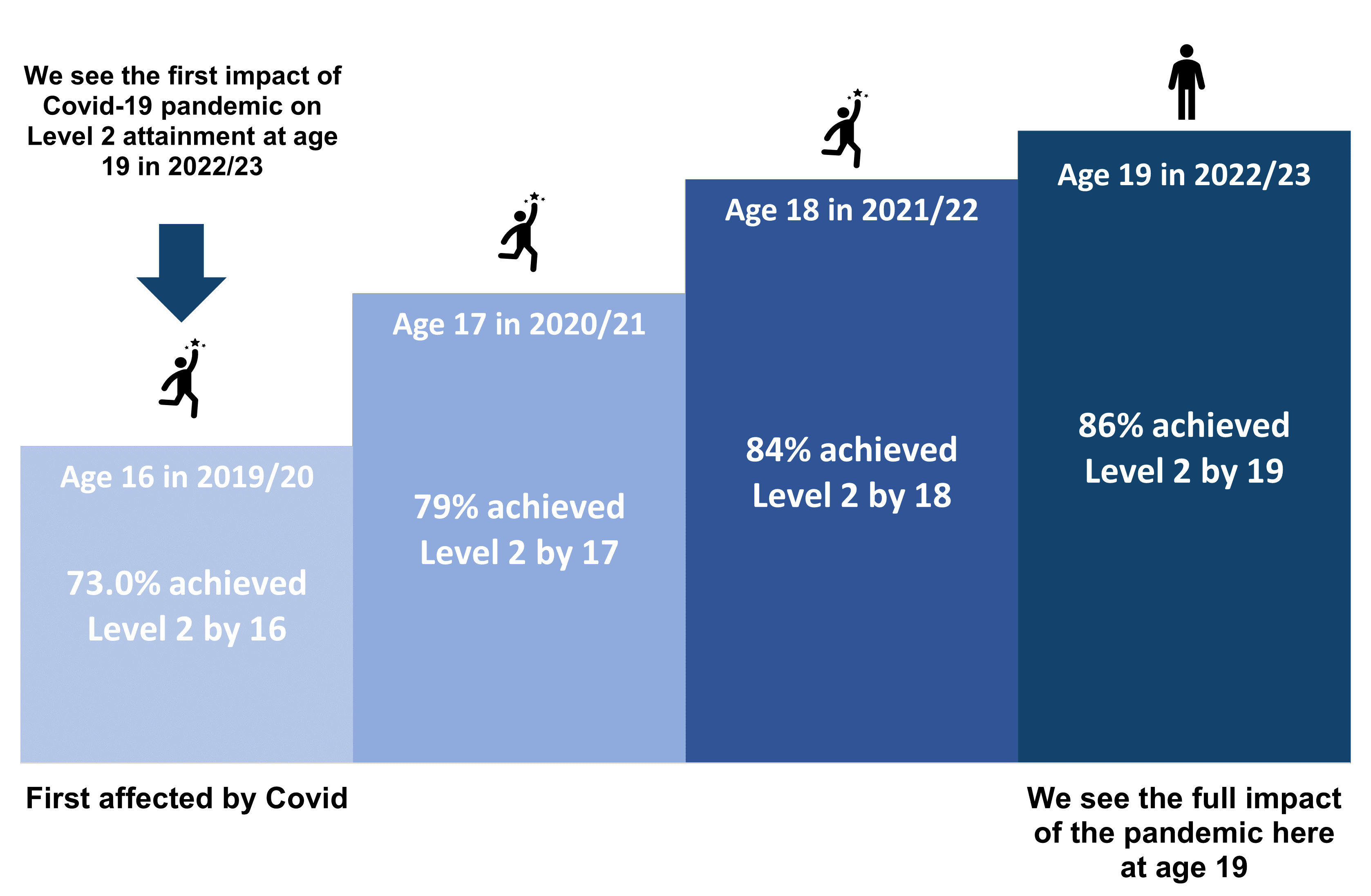 In these statistics, the attainment of the following measures refers to the proportion of people who achieved them as at 31st August i.e. the end of the academic year (e.g. 2022/23 refers to 31st August 2023):
