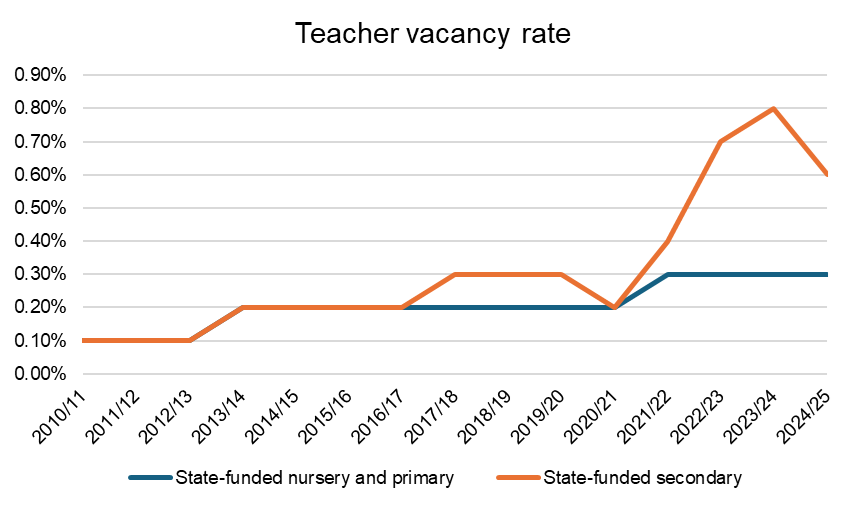 These are key metrics reflecting teacher levels in the state-funded schools sector and data has been sourced from the ‘School workforce in England’ publication (published in June 2025).