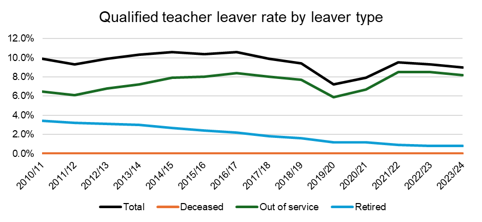 - In 2024/25, the latest year for which data was available [1] [2], leaver rates fell for most subjects (and primary) compared to 2023/24.