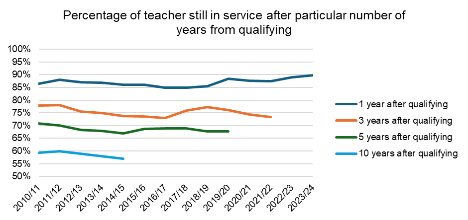 - The leaver rates trajectory is lower this year than last meaning fewer leavers need replacing by newly qualified teachers.